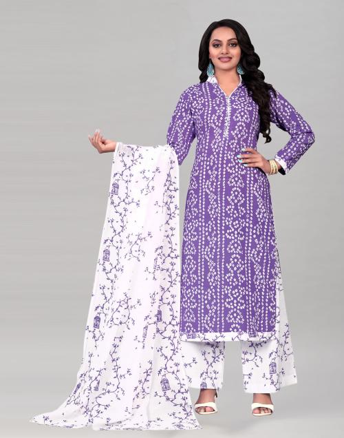 Siril Women Purple Printed Cotton Blend Unstitched Salwar Suit Dress Material