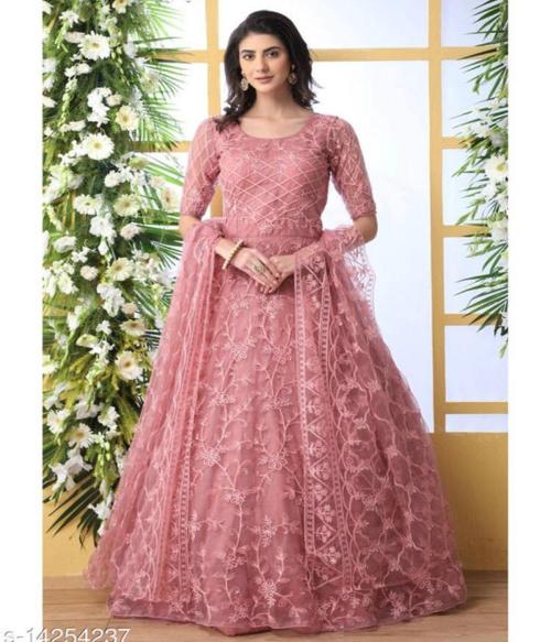 Sitaram designer Embroidered Net Semi Stitched Anarkali Gown (Pink)