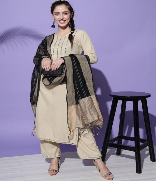 Sitaram Designer Women Cotton Anarkali Style Mirror Work Kurti , Palazzo & Duptta Set