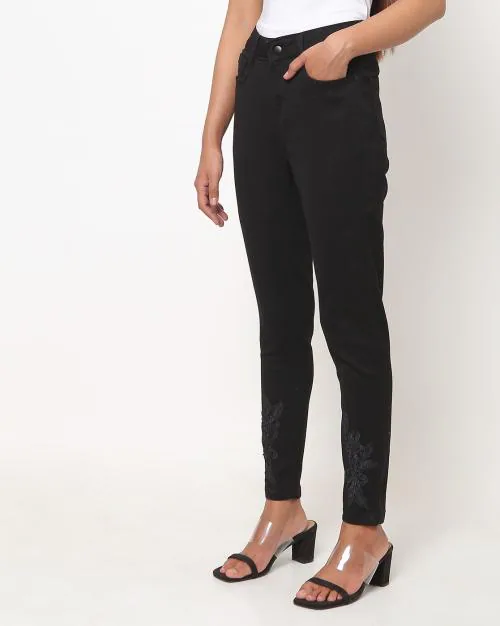 Skinny Fit Jeans with Flower Embroidery