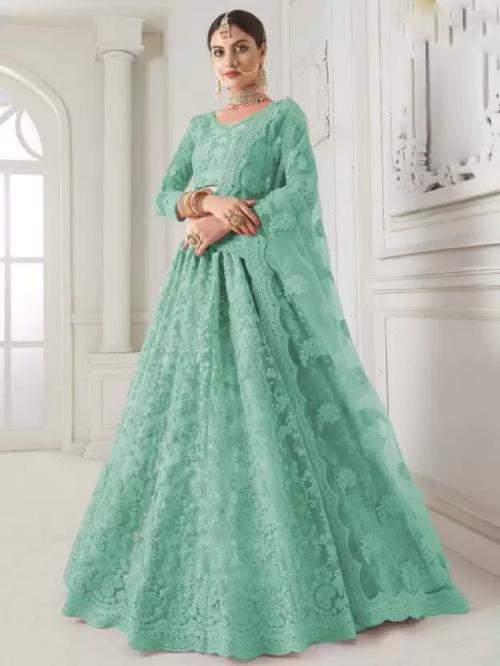 SkyTara Embroidered Semi Stitched Lehenga Chol (Light Green)