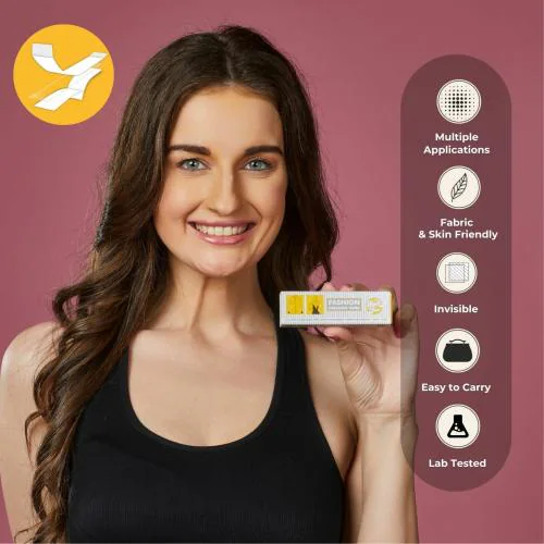- Professional grade adhesive that effectively sticks on the skin and fabric without leaving any residue. Medical grade adhesive with is skin friendly for men and women. These body tapes have been created to stick to the body and the fabric keeping the bra,