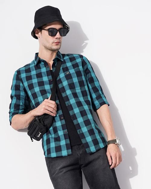 Men Slim Fit Checked Shirt with Patch Pocket