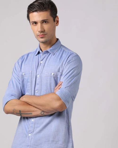Men Slim Fit Shirt with Patch Pockets