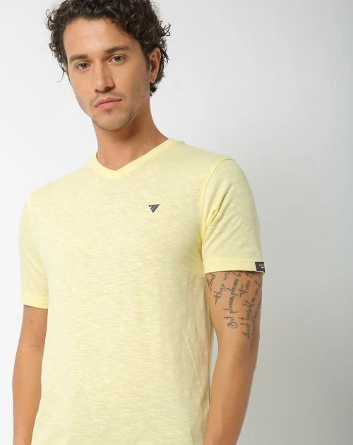 Regular Fit Slub Knit Heathered V-neck T-Shirt