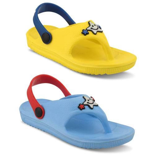 SMARTOTS Dailywear Casual Slipon Slippers/Clogs/Flip Flops with Back Strap for Kids-Combo Sky-blue & Yellow(Pack of 2 Pairs)