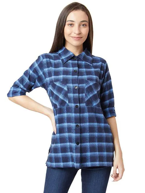 Smarty Pants Women Blue Checkered Cotton Shirt L