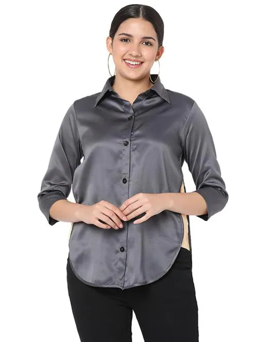 Smarty Pants Women Grey Solid Satin Shirt XXL
