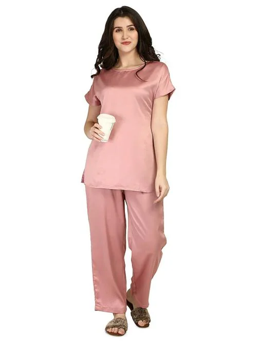 Smarty Pants Women Rose Gold Silk Satin Night Suit Pair (Pack of 1)