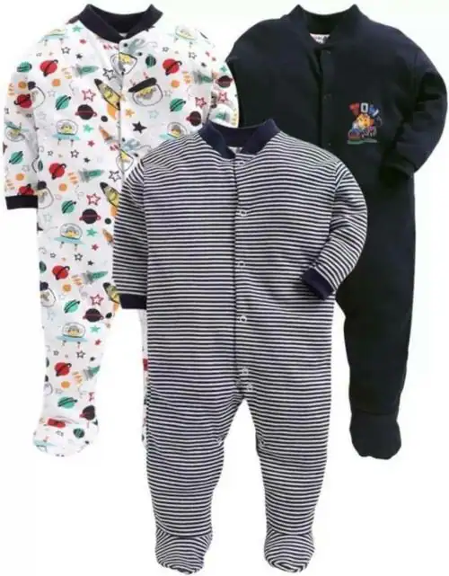 SMILEY APPU CLOTHING Romper For Baby Boys & Baby Girls Printed, Striped, Solid Hosiery (Black, Pack of 3)