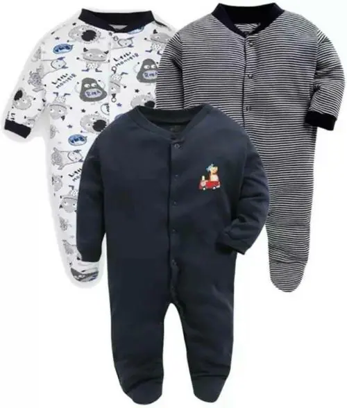 SMILEY APPU CLOTHING Romper For Baby Boys & Baby Girls Printed, Striped, Solid Hosiery (Multicolor, Pack of 3)