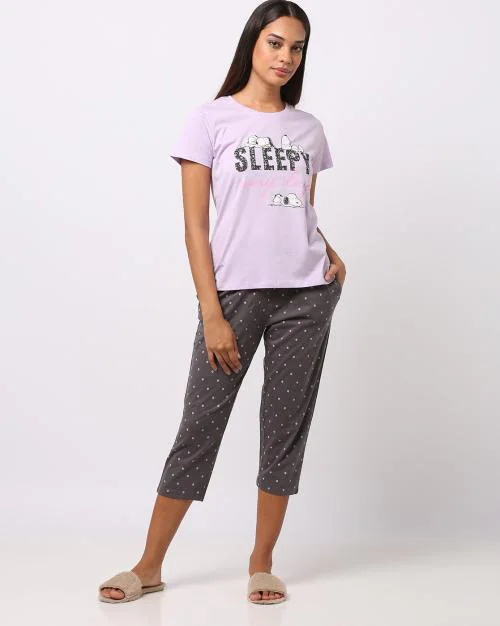 Snoopy Print T-Shirt & Capris Set