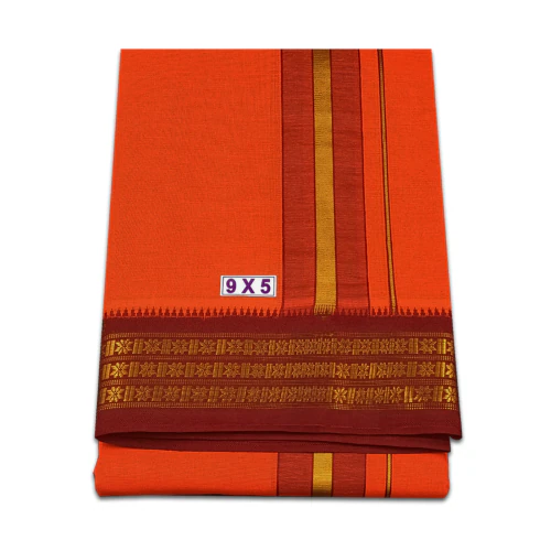South Indian Men's Pure Cotton Dhoti Towel set for Pooja | Cotton Color Unstitched Dhoti Towel 9X5 (Orange)
