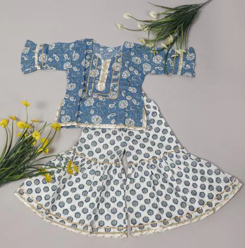 Spack Jerrow Baby Girls Cotton Sanganeri Printed Kurti with Colorful Sharara Dress (S1_18-24 M)