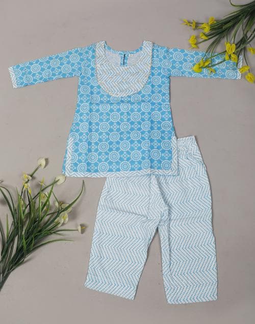 Spack Jerrow Kids dress girl|Kurti Palazo set for girls|kids palazzo set|Pure Cotton Printed Kurti Pajami/Pyjami Set for Baby Girl (B10_KPJ_7-8 Y)