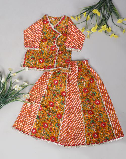 Spack Jetrtow Baby Girls Cotton Jaipuri Print Top/Kurti and Printed Lehnga/Skirt Set (S19_9-10 Y)
