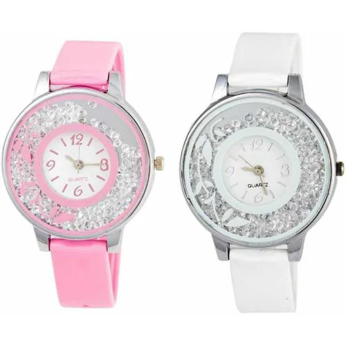 Splazos Analog Bandhan Multicolor Dial Black Strap Watch For Girls (Pack of 2)
