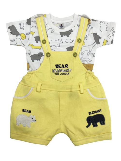 SPONGY Baby Boy and Girl Printed Cotton Blend T-Shirt with Dungaree Shorts