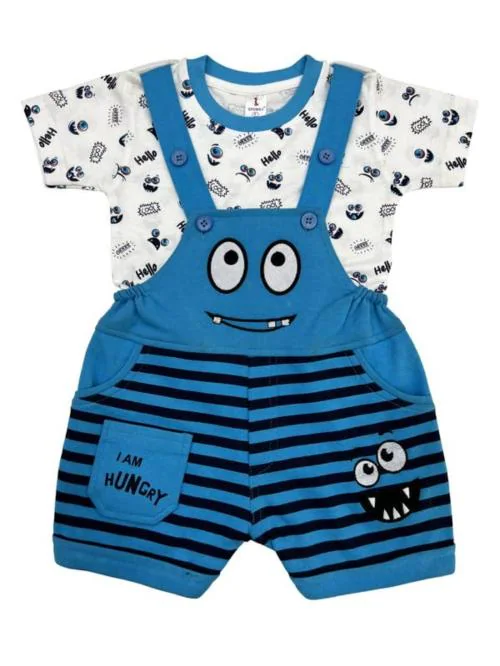 - This dungaree set from the house of spongy kids is made of cotton.It features a regular fit, round neck, and half sleeve. It is recommended to wash the clothes separately in cold water. If you want your child to look great and also want a unique comfortable dress then your search ends here