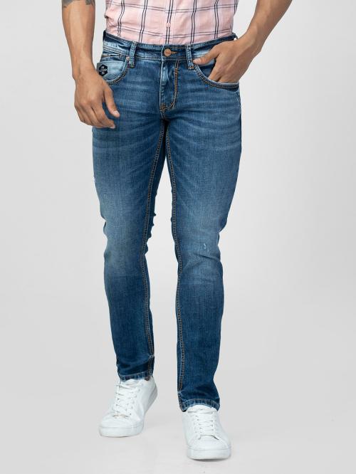 Spykar Men Dark Blue Cotton Slim Fit Narrow Length Jeans (Skinny)