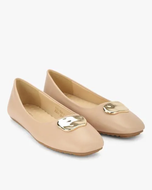 Square-Toe Ballerinas with Metal Accent