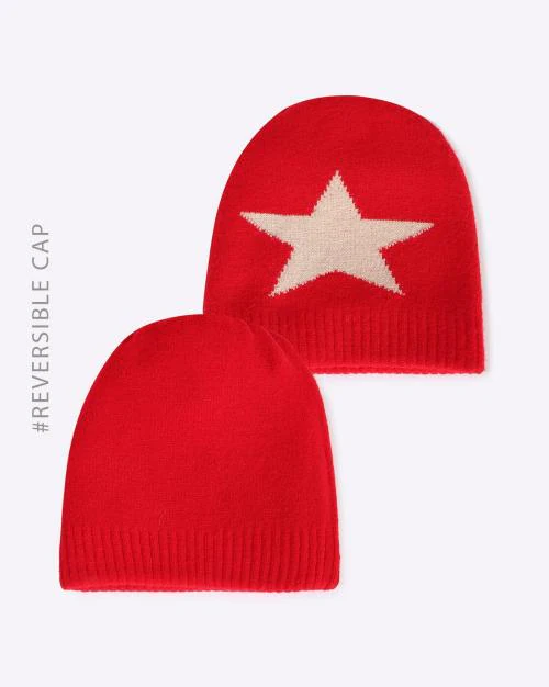 Girls Star Print Reversible Beanie