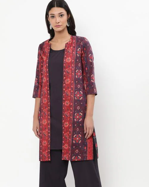 Straight Kurta Set with Printed Shrug