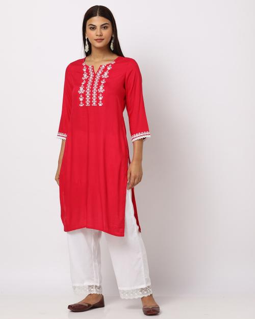 Straight Kurta with Embroidered Yoke