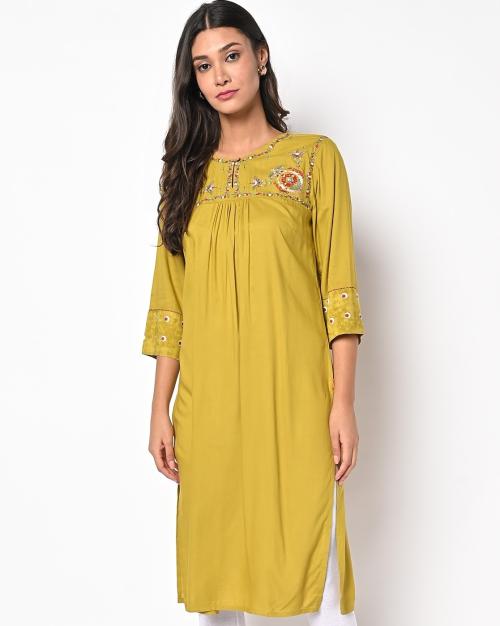 Straight Kurta with Embroidered Yoke