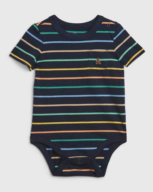 Striped Bodysuit with Patch Pocket