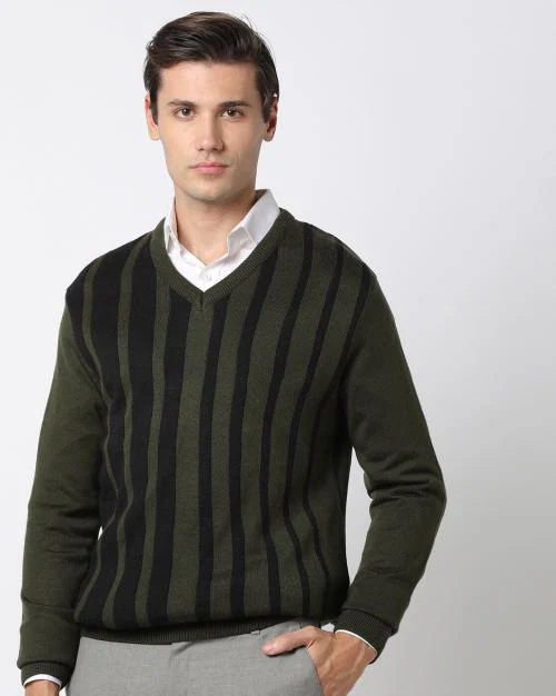 Striped Knitted V-Neck Pullover