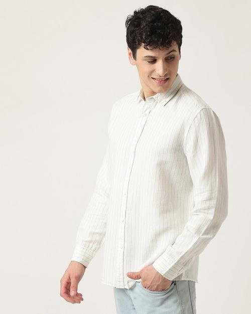 Striped Spread Collar Cotton Mix Shirt