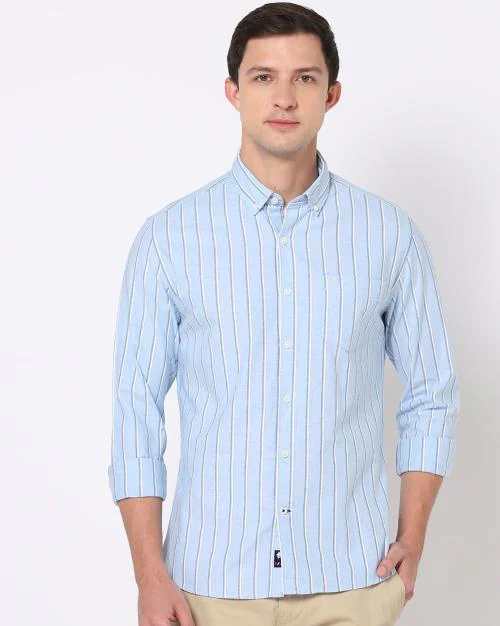 Striped Slim Fit Shirt with Patch Pocket
