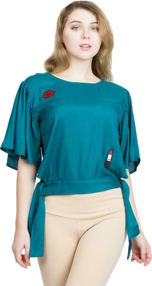 stylemyth Women Blue Solid Cotton Rayon Blend Top