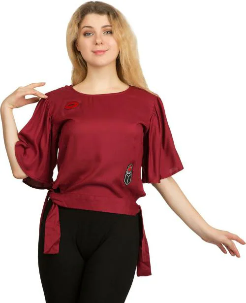 stylemyth Women maroon Solid Rayon Top