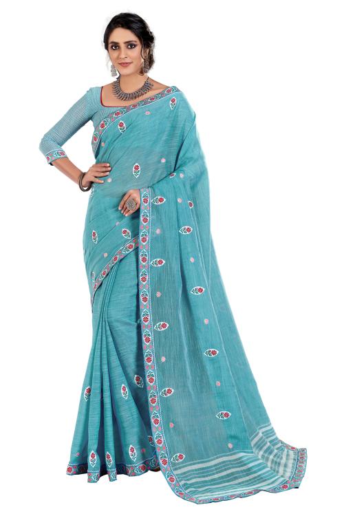 This Lami Linen Cotton Saree With Butta Embroidery Work Saree as Per the Trends Giving the Best Experience.