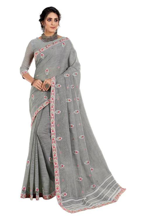 This Lami Linen Cotton Saree With Butta Embroidery Work Saree as Per the Trends Giving the Best Experience.