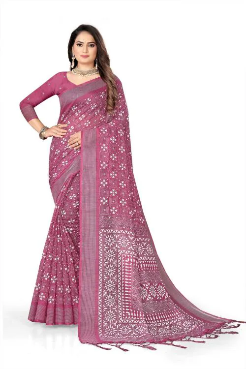 Stylewell Women's Fancy Cotton Silk Digital Printed Saree With Handmade Zaalar and Blouse Piece