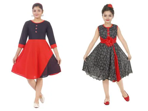 STYLOKIDS Girls Multicolor Crepe Self Design Pack Of 2 A-line Dress girls dress | kids dress | dress for girls | frocks for girls