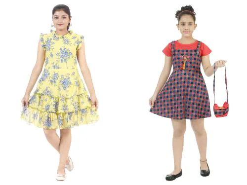 STYLOKIDS Girls Multicolor Crepe Self Design Pack Of 2 A-line Dress girls dress | kids dress | dress for girls | frocks for girls