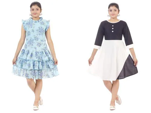 STYLOKIDS Girls Multicolor Crepe Self Design Pack Of 2 A-line Dress girls dress | kids dress | dress for girls | frocks for girls