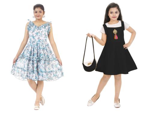 STYLOKIDS Girls Multicolor Crepe Self Design Pack Of 2 A-line Dress girls dress | kids dress | dress for girls | frocks for girls