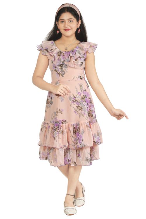 STYLOKIDS Girls peach Georgette All over print Single A-line Dress