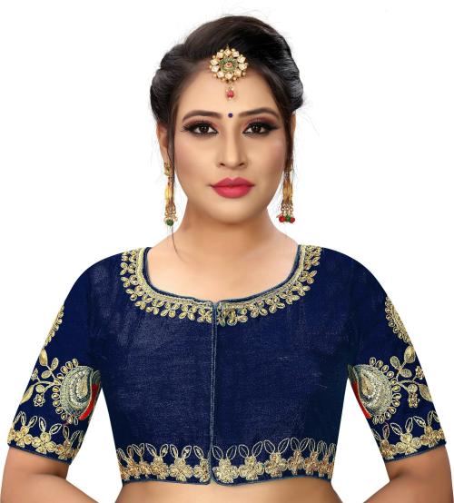 Sumaira Tex Dark Blue Cotton Padded Round Neck Women Blouse - 38