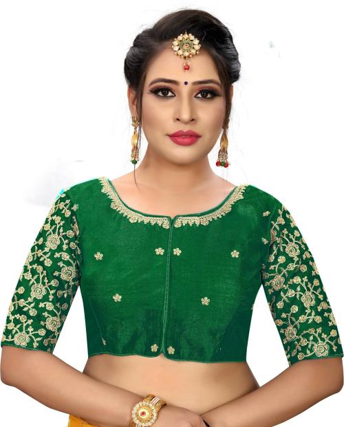 Sumaira Tex Green Cotton Padded U-Neck Women Blouse - 38