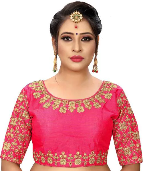 Sumaira Tex Pink Cotton Padded Round Neck Women Blouse - 38