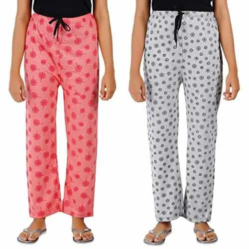 SUMAN TEX Women Light Pink and Grey Printed Cotton Pyjama - S (Pack of 2)