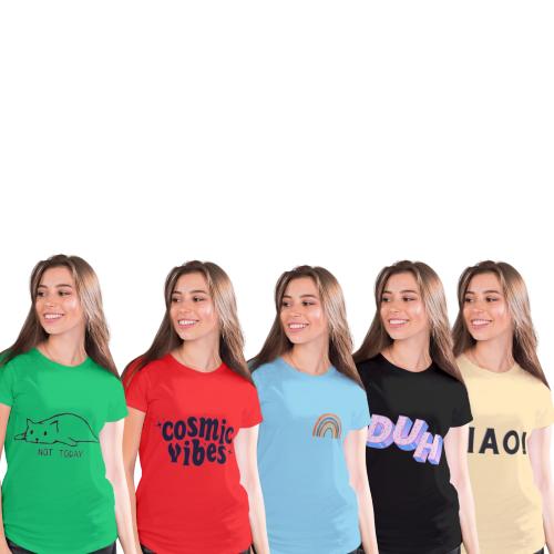 SUMAN TEX Women's Cotton Tshirts (Combo of 5 | Small to Medium Prints) (L)