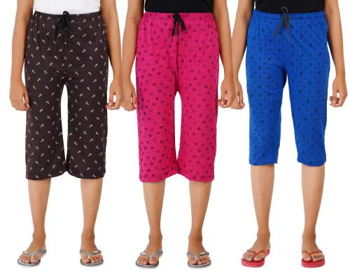 Suman Tex Women Stylish Fashion Cotton Printed Capris Multicolor Pack Of 3 (XXXL)