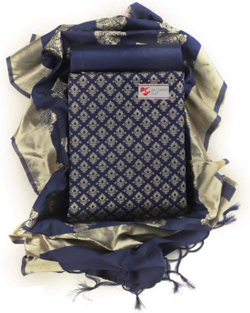 Sun Fashion And Lifestyle Women Dark Blue Self Design Jacquard Unstitched Salwar Suit Material